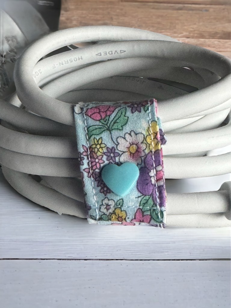 Se pueden hacer con diferentes estampados y diferentes tamaños. En este caso, fue hecho para el cable de la plancha.