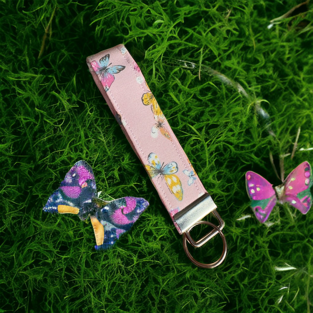 Encantador llavero de tela rosa adornado con mariposas. 🦋