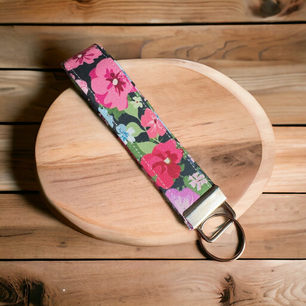 Este accesorio único combina la belleza de un estampado florar con la calidad de la artesanía hecha a mano, creado un llavero que es tan funcional como elegante, presentando detalles cuidadosamente elaborados.